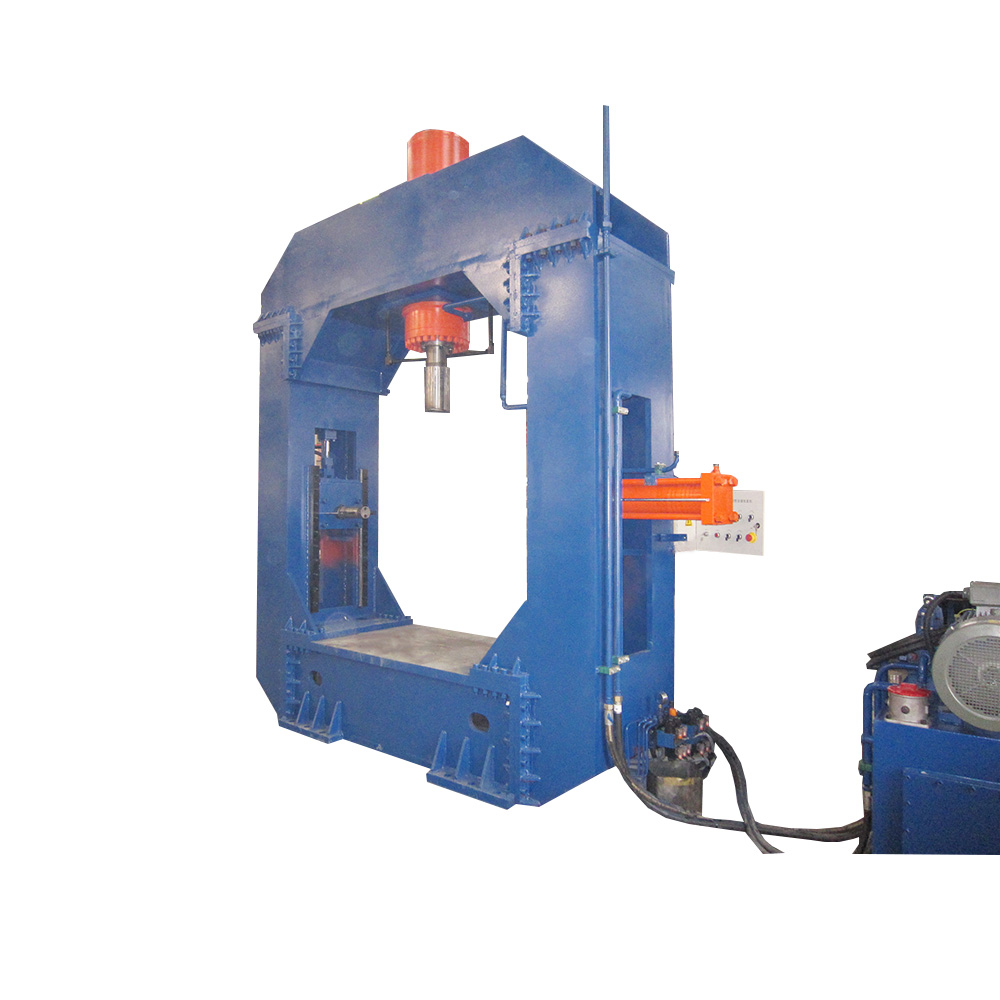 設(shè)備由龍門式液壓機(jī)、液壓站、控制柜、電動(dòng)托架、托架導(dǎo)軌等部分組成。